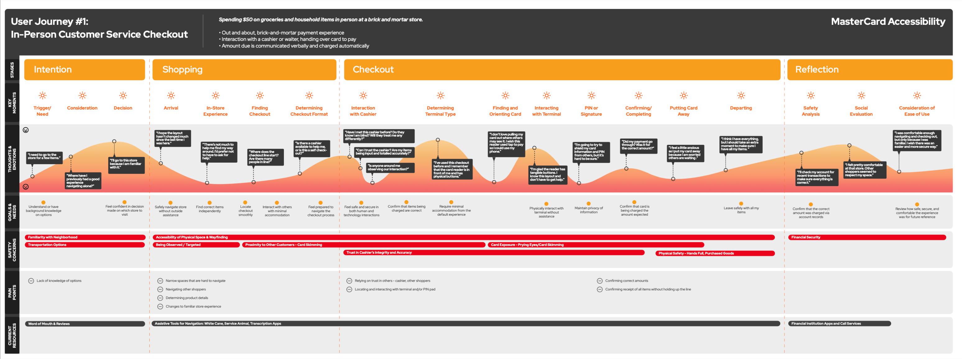 The broader ecosystem would support this experience by ensuring that merchants, devices, and digital environments could recognize and respond to the card’s capabilities. Rather than reinventing infrastructure, the strategy leveraged existing technologies and payment flows, making the solution both scalable and feasible while extending meaningful accessibility improvements across real-world contexts.